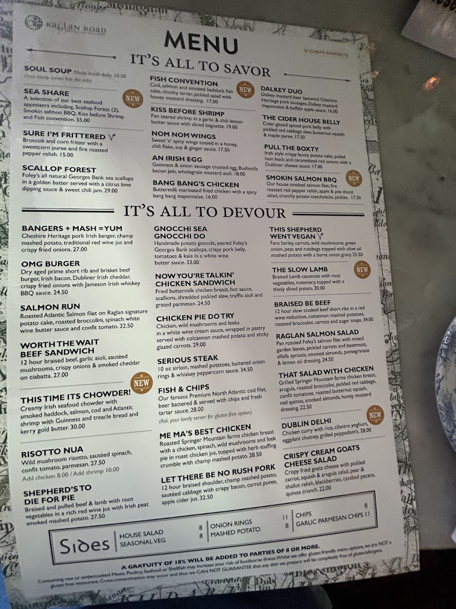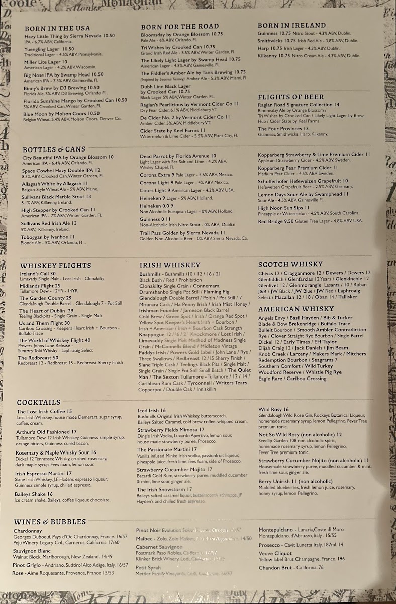 Welcome to Raglan Road Irish Pub, where authentic Irish flavors meet vibrant ambiance! Nestled in the heart of Orlando, this pub offers a delightful all-day menu that includes standout dishes like SOUL SOUP, made fresh daily, and the indulgent AN IRISH EGG, featuring a Guinness & onion sausage-crusted egg paired with Bushmills bacon jam. For a twist, try WHEN IRELAND DATES AMERICA, mac n cheese bites bursting with flavor.